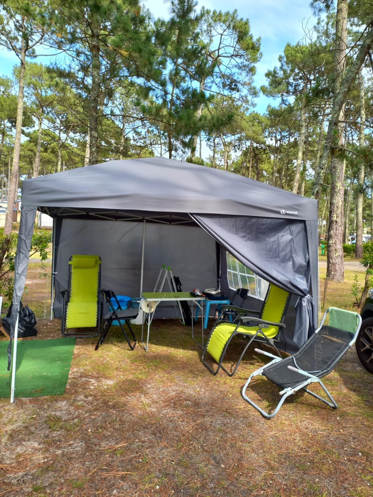 Dank des klappbaren Rahmens und der Tragetasche lässt sich der Pavillon platzsparend verstauen. Er passt problemlos in den Kofferraum und benötigt wenig Platz bei der Einlagerung im Winter. Nehmen Sie Ihren Komfort überall mit hin!