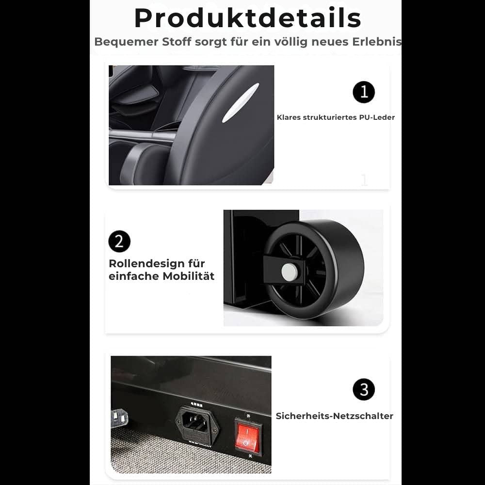 Stell dir einen Alltag ohne Stress und Verspannungen vor. Mit dem Massagestuhl A5 bringen wir Luxus und moderne Technologie direkt in dein Zuhause. Dieser Stuhl ist nicht nur ein Massagestuhl – er ist deine persönliche Oase der Entspannung und des Wohlbefindens.